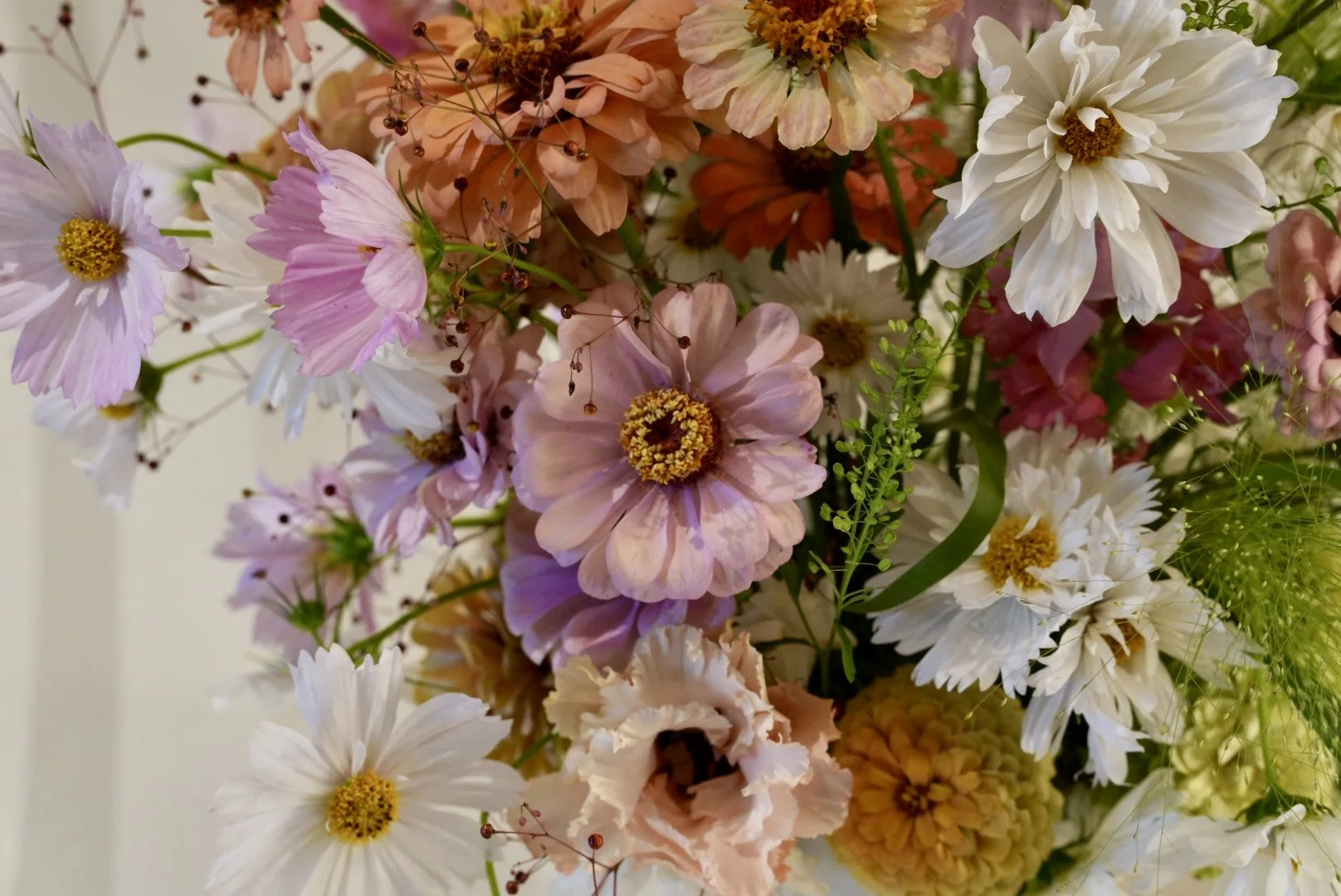 Whenever possible, we prioritize our own blooms or locally grown seasonal flowers for their character, texture, and unmistakable sense of place.